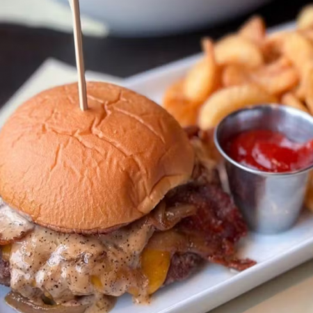 Add steak tips, grilled chicken, grilled salmon or grilled shrimp for an extra charge. Dressing choices include honey mustard, balsamic, ranch, citrus vinaigrette, or bleu cheese.