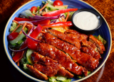 1/2 Pan (serves 8-10), Full Pan (serves 15-20). Salad dressings: House White Balsamic, Ranch, Italian, Chunky Blue Cheese, Greek, Chipotle Ranch. Add Grilled Chicken to any salad. 1/2 pan ($15), Full Pan ($30).